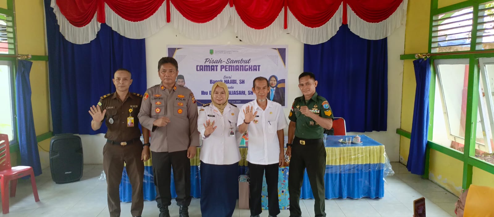 Sambas – Anggota Koramil 1208-05/Pemangkat Serka Rahmadsyah hadiri serah terima pejabat Camat Pemangkat dari Bapak Hajibi, S.H kepada Ibu Defi Kamaluasari, S.H yang bertempat di Aula kantor Camat Pemangkat Jalan Uray bawadi, Desa Pemangkat Kota, Kec. Pemangkat, Kab. Sambas, Rabu (11-06/25).