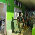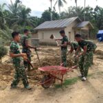 Aceh Tamiang – Prajurit TNI dari Kodim 0117/Aceh Tamiang bersama Personil Yonzipur