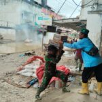 Aceh Tamiang – Anggota Koramil 03/Seruway jajaran Kodim 0117/Aceh Tamiang bersama TNI