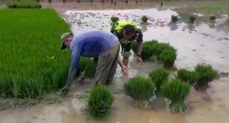 “Seperti saat ini, kami ikut terjun kesawah dalam membantu para petani untuk mengumpulkan bibit padi yang siap untuk ditanami,” ungkap Serda Riki.