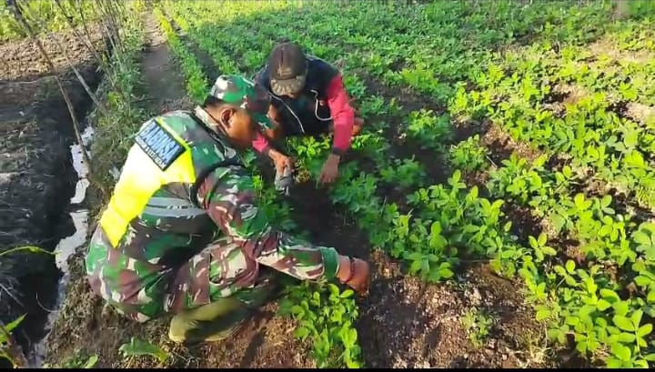 Babinsa Bantu Petani Bersihkan Gulma Di Lahan Kacang Tanah