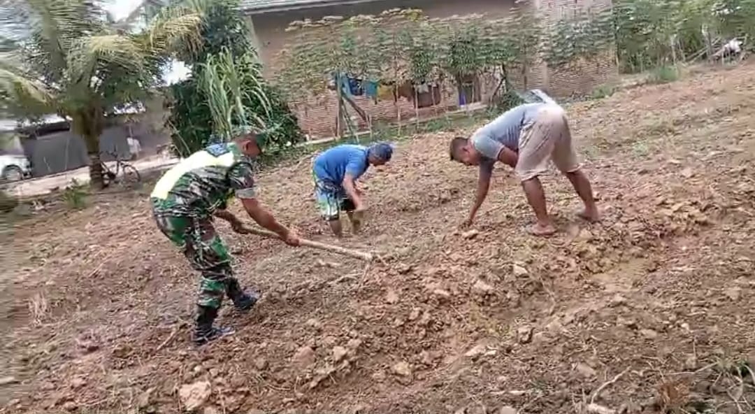 Seperti halnya yang tengah dilakukan oleh Serda Zekiy Nopiansyah, Babinsa Koramil 03/Seruway yang membantu salah satu petani dalam penggarapan lahan yang dipersiapkan untuk penanaman tanaman cabe di Desa Sungai Kuruk Satu, Kecamatan Seruway, Kabupaten Aceh Tamiang. Senin (20/04/2026).