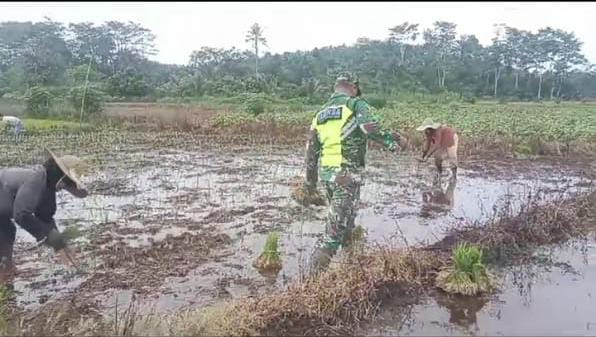 Babinsa Bantu Petani Tanam Padi, Guna Tingkatkan Ketahanan Pangan