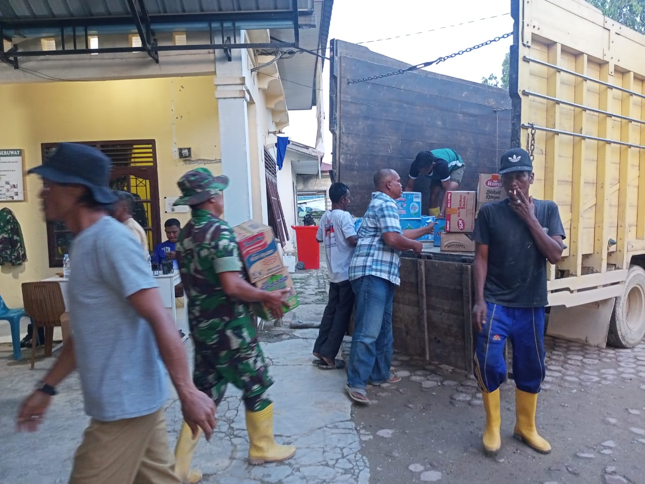 Warga tampak memadati lokasi penyaluran bantuan yang berisi paket sembako dan kebutuhan dasar lainnya. Kehadiran Babinsa menjadi faktor penting dalam memastikan kegiatan berjalan tertib, aman, dan tepat sasaran, mengingat banyaknya masyarakat yang datang untuk menerima bantuan.