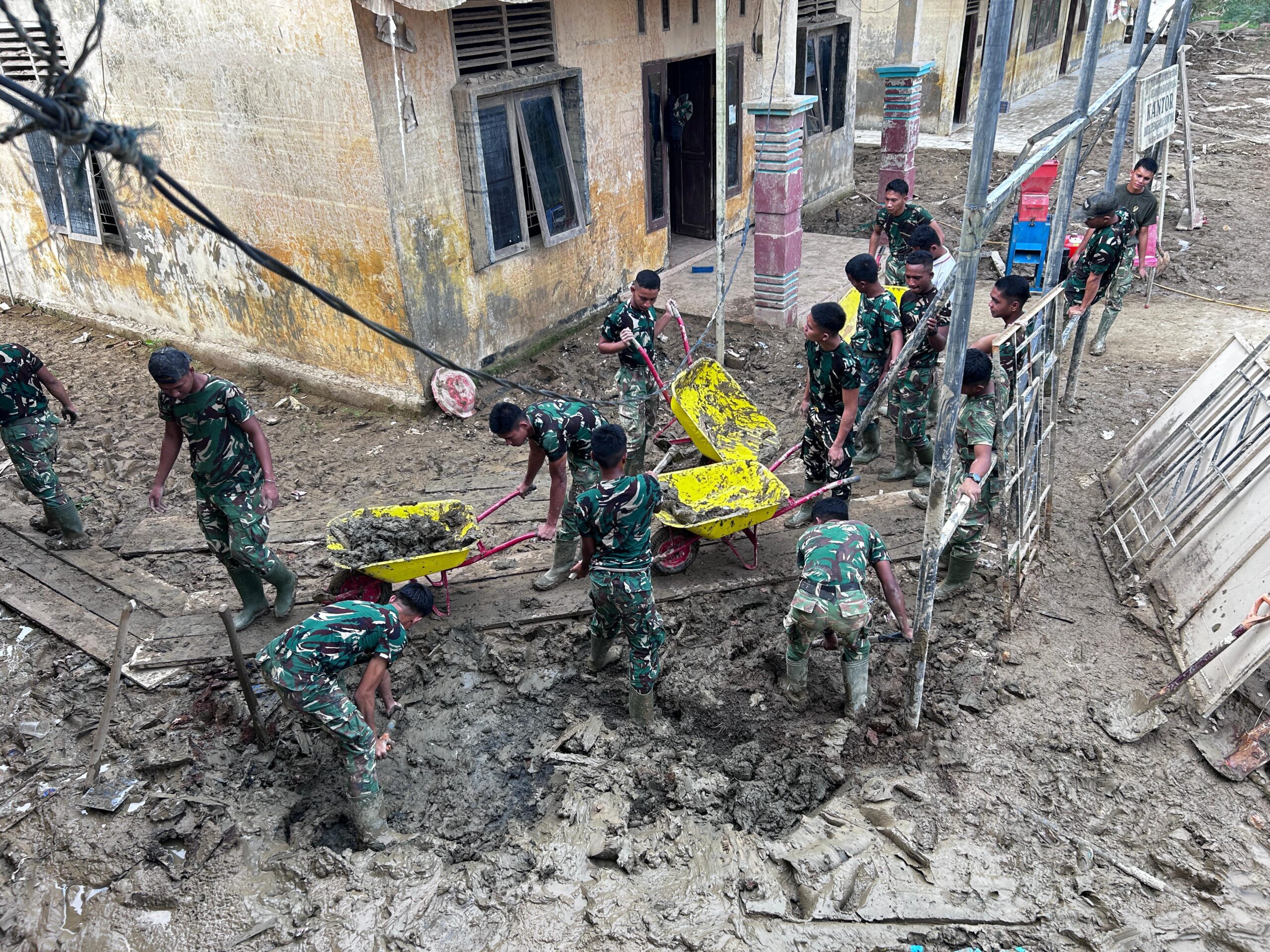 Menyikapi situasi tersebut, Babinsa Koramil 05/Tamiang Hulu Serda Aulnizar bersama tim satgas Gulbencal dari Batalyon TP 902/SPG turun langsung ke lokasi untuk membersihkan lumpur di halaman, serta di dalam ruangan Kantor Datuk Penghulu dan Balai Desa.