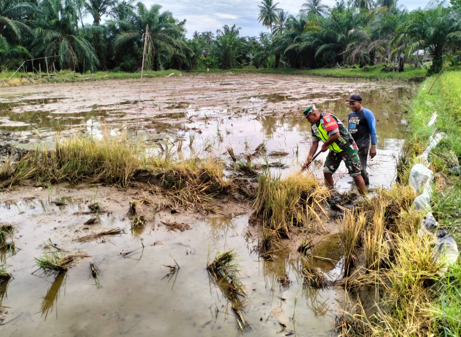 Aceh Tamiang – Dalam rangka mendukung Penguatan Ketahanan Pangan yang ada di wilayah binaannya, Serda Sri Wahyudi membantu membuat bedengan di sawah milik Ahmad di Desa Seunubuk Aceh, Kecamatan Bendahara, Kabupaten Aceh Tamiang. Jumat (21/11/2025).