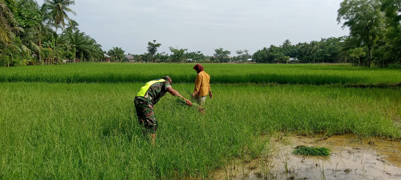 Aceh Tamiang – Babinsa Koramil 04/Bendahara Sertu Endrik melakukan pendampingan kepada petani di Desa Cinta Raja, Kecamatan Bendahara, Kabupaten Aceh Tamiang.