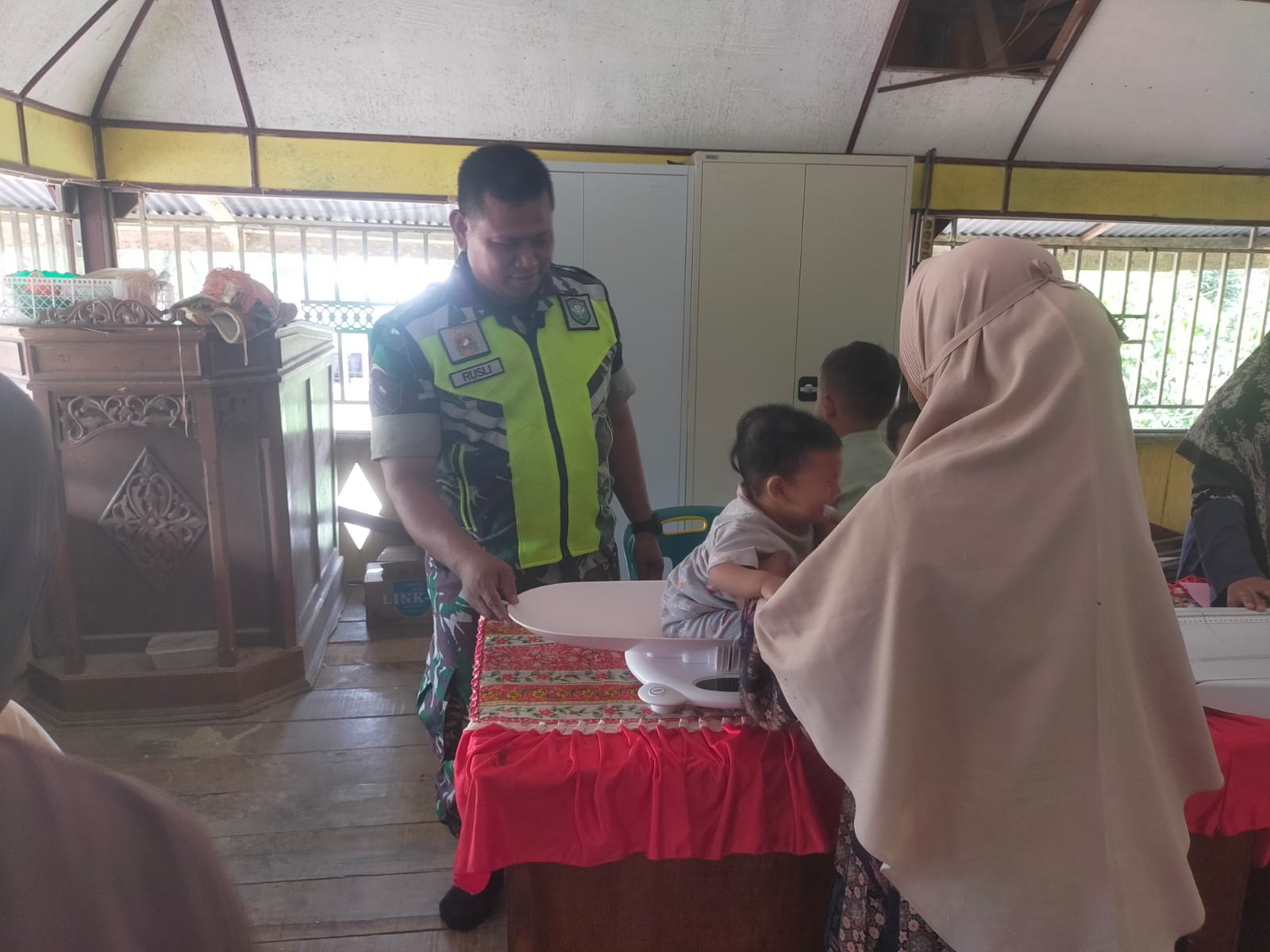 Aceh Tamiang – Babinsa Koramil 01/Kuala Simpang, Kodim 0117/Aceh Tamiang Serda Defril, aktif mendampingi kegiatan imunisasi balita di wilayah binaannya Desa Kota lintang, Kecamatan Kota Kuala Simpang, Kabupaten Aceh Tamiang. Jumat (29/08/2025).