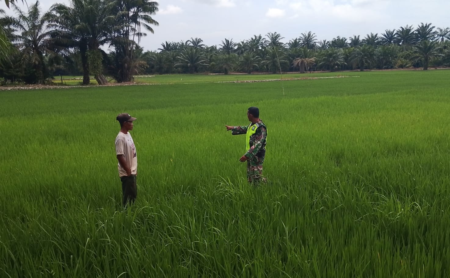 Aceh Tamiang – Babinsa Koramil 04/Bendahara Sertu Indra melaksanakan kegiatan pendampingan hanpangan pemantauan tanaman Padi milik Bapak Rahman yang berada di Desa Sukamulia BD, Kecamatan Bendahara, Kabupaten Aceh Tamiang. Sabtu (16/8/2025)