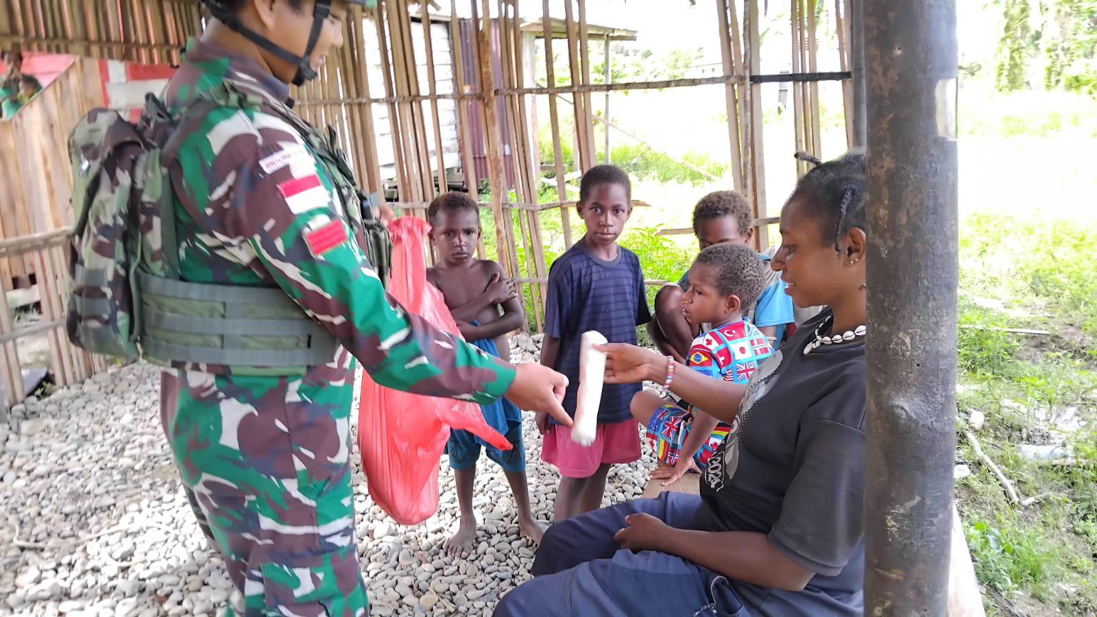 Komandonews.com,Koroway–Satgas Pamtas RI-PNG Yonif 141/AYJP Pos Koroway melaksanakan kegiatan berbagi kepada masyarakat di kampung mabul distrik Koroway, Interaksi sosial dengan masyarakat sekitar terutama masyarakat yang membutuhkan ini bertujuan untuk menyebarkan kebaikan dan mempererat hubungan masyarakat setempat kampung mabul, Distrik Korowai. Sabtu (01/02/2025).