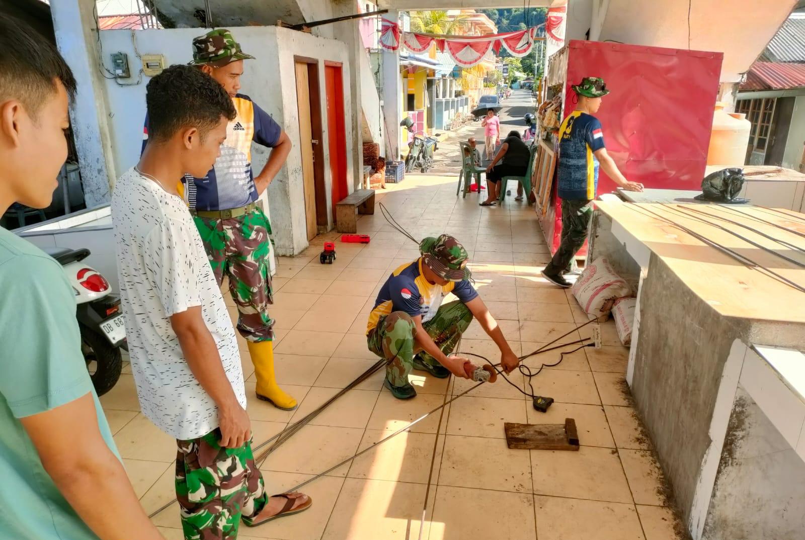 Bersih-bersih Pasar Tandu Rusa, Warga dan TNI Bersinergi