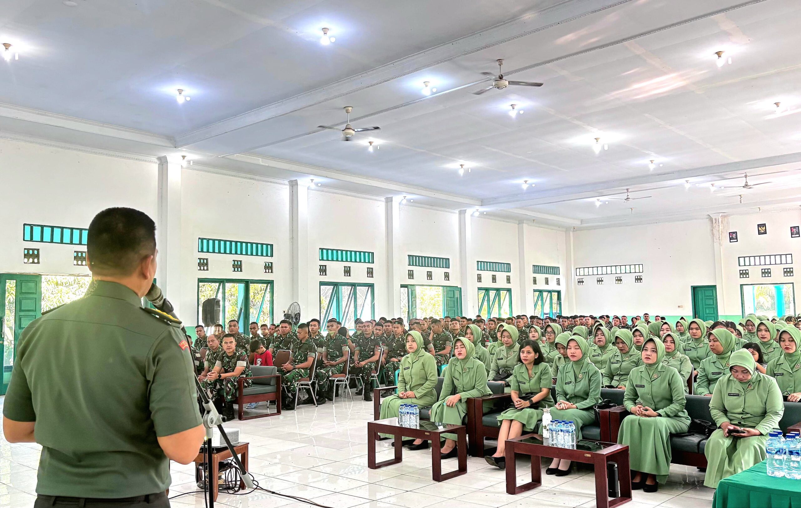 Dengan tema, “Meminimalisir Perceraian Prajurit Dalam Rangka Mendukung Tupok”, penyuluhan ini disampaikan oleh Mayor Inf Amri, S.Ag.,(Kasibinrohis Bintaljarahdam II/Swj).