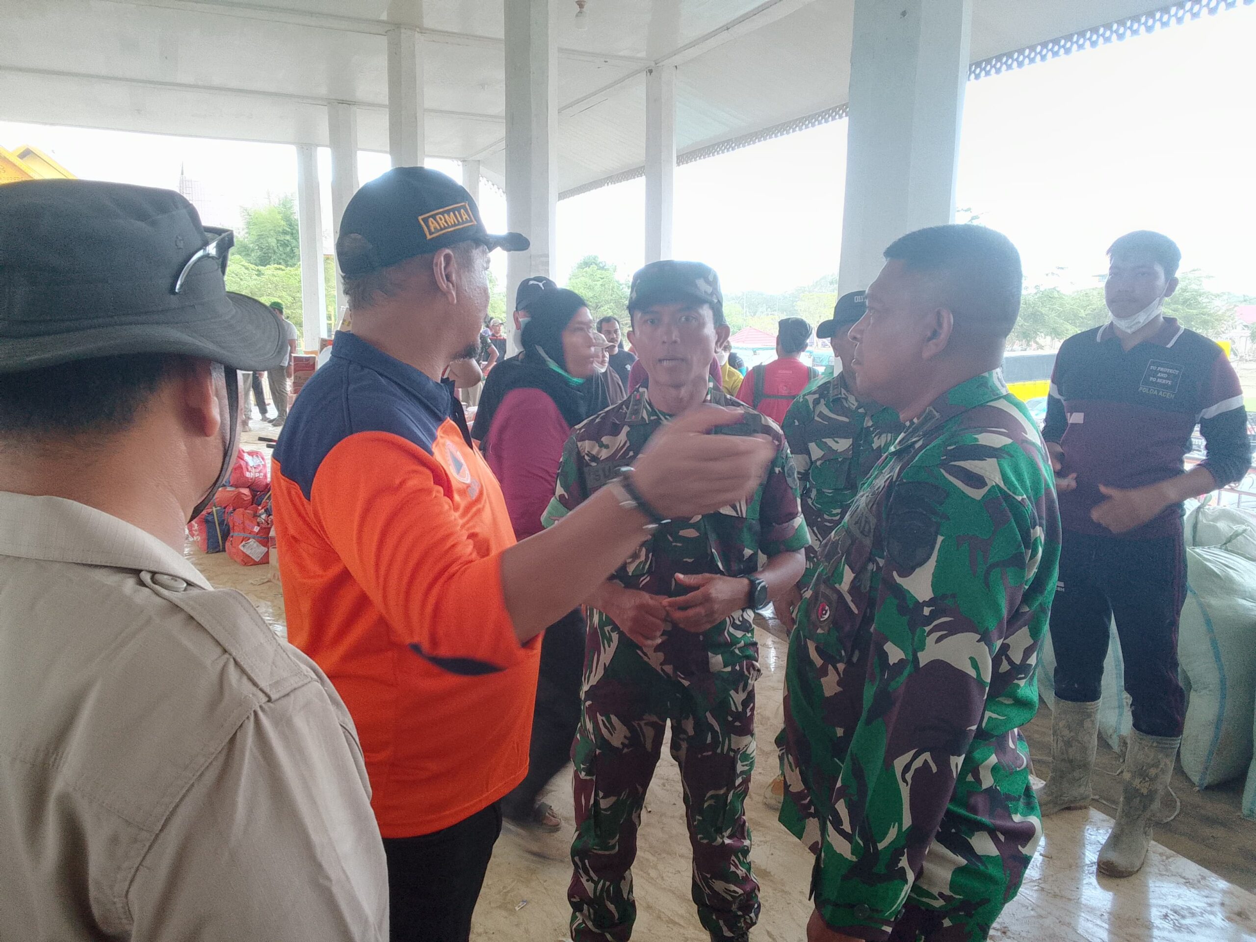 Aceh Tamiang – Komandan kodim 0117/Aceh Tamiang Letkol Arm Raden Subhi Fitra Jaya, S.Sos, M.M., bersama Forkopimda dampingi Danrem 011/Lilawangsa Kolonel Inf. Ali Imran, meninjau Posko induk bencana di wilayah Kabupaten Aceh Tamiang, bertempat di teribun belakang kantor bupati Desa Bundar, Kecamatan Karang Baru, Kabupaten Aceh Tamiang. Senin (08/12/2025) sore.