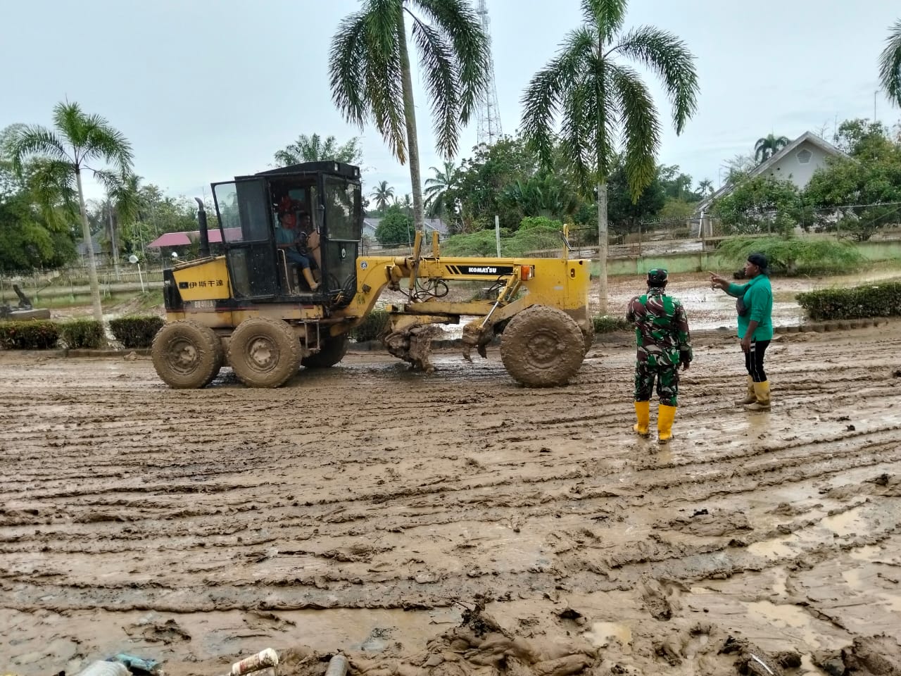 Di beberapa desa, ekskavator dan loader dikerahkan untuk menyingkirkan material lumpur yang mengeras, sementara tim lapangan memastikan proses pembersihan berjalan aman. Seperti yang terlihat di lapangan Babinsa Koramil 08/Rantau Serma Syafrizal terus kawal alat berat yang sedang berkerja di jalan Kecamatan Rantau, Kabupaten Aceh Tamiang untuk membuka jalur agar aktivitas kembali pulih dan bantuan logistik dapat disalurkan lebih cepat. Selasa (16/12/2025).
