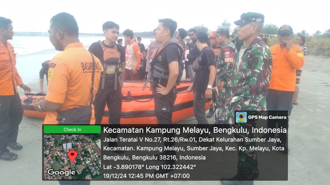 Komandonews.com,Bengkulu – Danramil 407-07/Kampung Melayu Kapten Inf Kurni Amri didampingi Babinsa Koramil 407-07/Kampung Melayu bersama warga setempat melaksanakan pencarian korban tenggelam an. Ilham Febriansyah (17 Th) dan Andika Pratama (19 th) pada hari Kamis tanggal 19 Desember 2024 pukul 07.30 WIB di Pantai Pulau Bai Jl. Pantai Indah RT.08 RW.02 Kel. Sumber Jaya Kec. Kampung Melayu Kota Bengkulu.