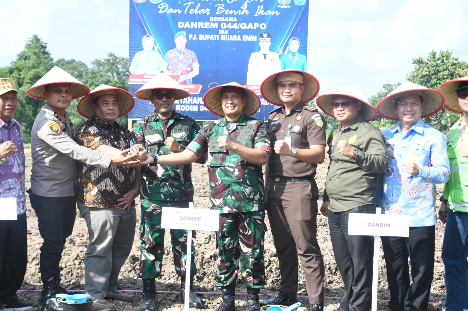 Pj. Bupati Muara Enim yang diwakili oleh Sekda, Bapak Ir. Yulius, MSi, mengungkap dalam sambutannya, “Di lahan seluas 4 Ha ini, kita lakukan tanam sayur dan tebar benih ikan bersama Danrem 044/Gapo,” ujar Sekda.