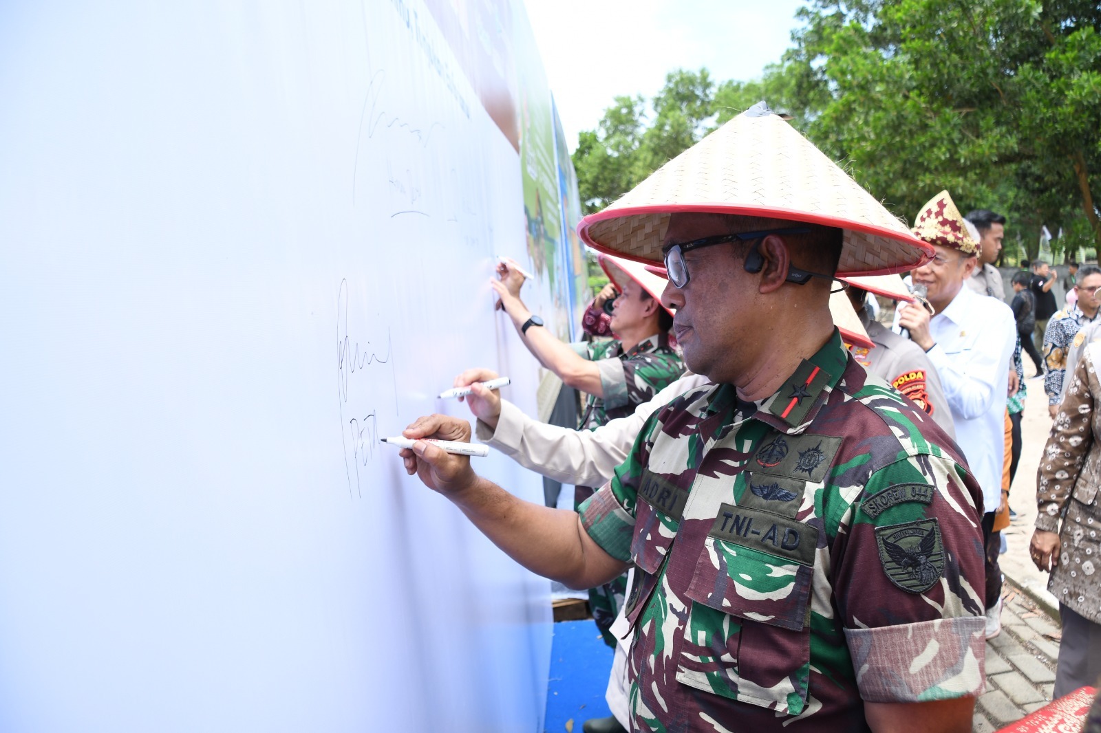 Kapolda Sumsel Irjen Pol Andi Rian R. Djajadi, Anggota Komisi IV DPR RI Hj. Kartika Sandra Desi, Kapolrestabes Palembang Kombes Pol Harryo Sugihhartono, Dandim 0418/Plg Kolonel Kav Ferdiansyah, Kepala Dinas Pertanian TPH Sumsel Bambang Pramono, Kepala Dinas Pertanian Kota/Kabupaten, serta para petani dari Kota/Kabupaten.