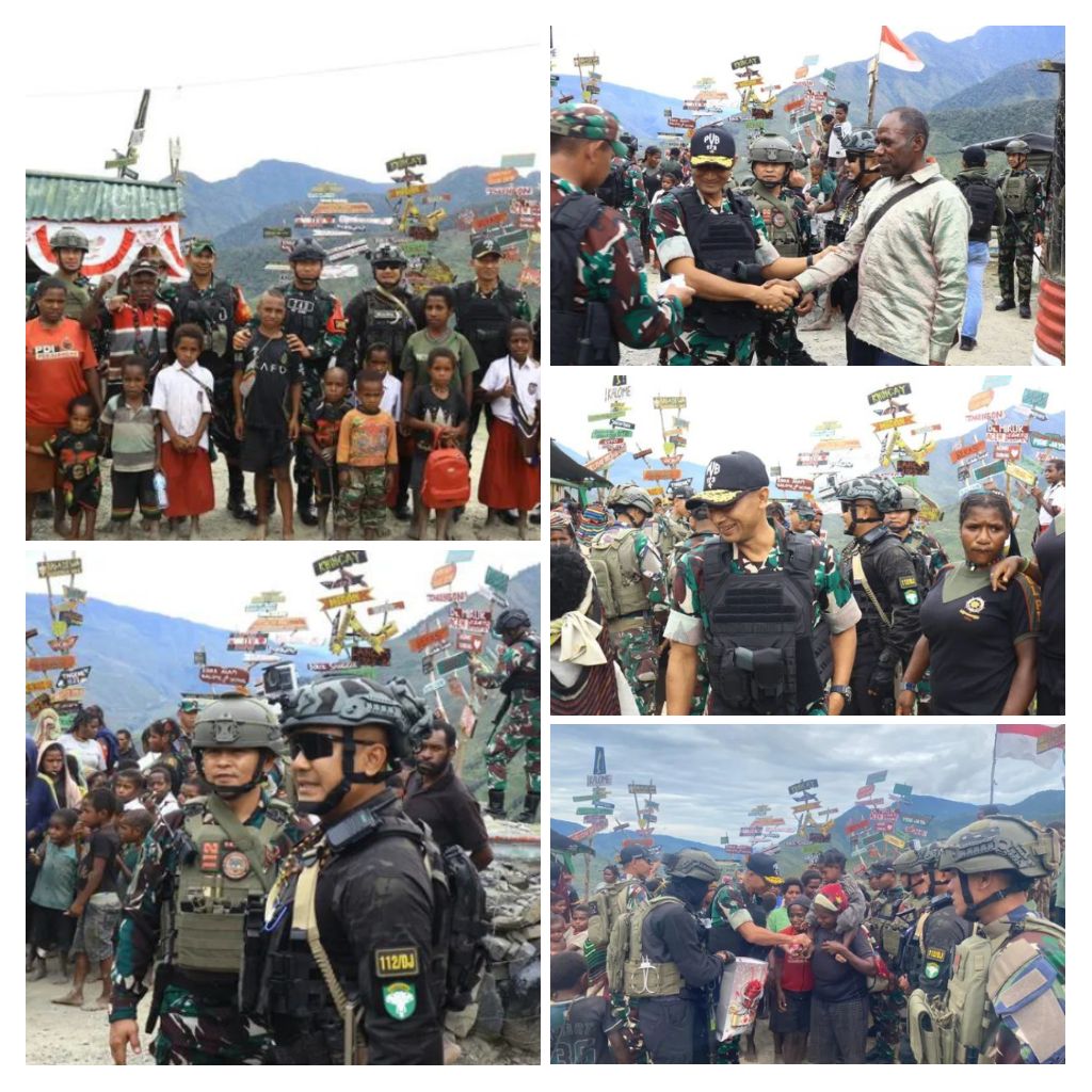 Puncak Jaya ~ Kepedulian dan sentuhan kemanusiaan kembali ditunjukkan TNI di Tanah Papua. Komandan Korem 173/PVB Brigjen TNI I Ketut Mertha Gunarda bersama Komandan Satgas Yonif 112/DJ Letkol Inf Fiska Bagus Tri Sunaryanto menebar kasih dan berbagi kebahagiaan kepada masyarakat Kampung Kalome, Distrik Tinggi Nambut, Kabupaten Puncak Jaya, Papua Tengah, Sabtu (31/01/2026).