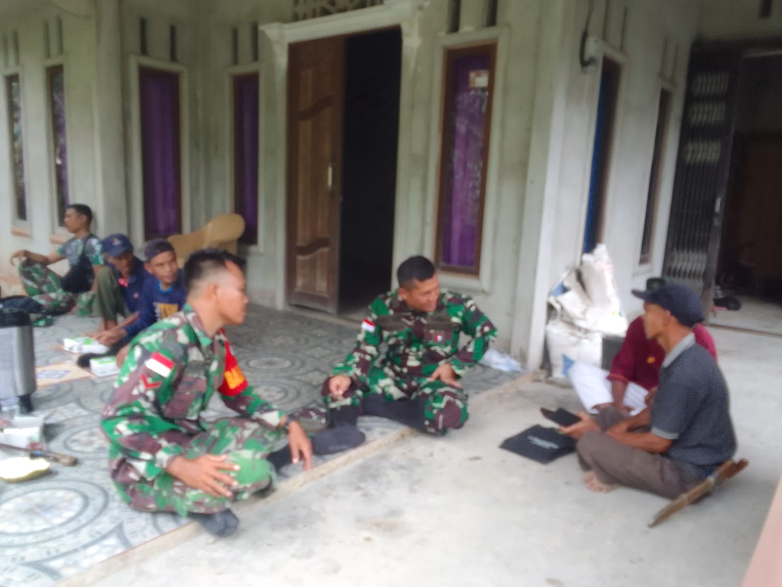 Sambas – Di sela-sela padatnya kegiatan TNI Manunggal Membangun Desa (TMMD) ke-126 Kodim 1208/Sambas, Dansatgas dan anggota Satgas memanfaatkan waktu istirahat dengan beristirahat di rumah warga di lokasi kegiatan, Selasa (21/10/2025).
