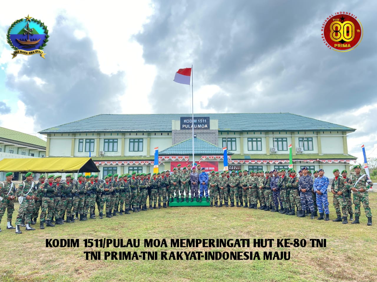 Pulau Moa, komandonews- Semangat kebersamaan dan dedikasi terpancar jelas dalam upacara peringatan Hari Ulang Tahun (HUT) TNI ke-80 yang digelar oleh Kodim 1511/Pulau Moa. Acara yang berlangsung di Markas Kodim ini menjadi bukti nyata kedekatan TNI dengan rakyat serta komitmen untuk terus memajukan Indonesia, Minggu, (5 Oktober 2025).
