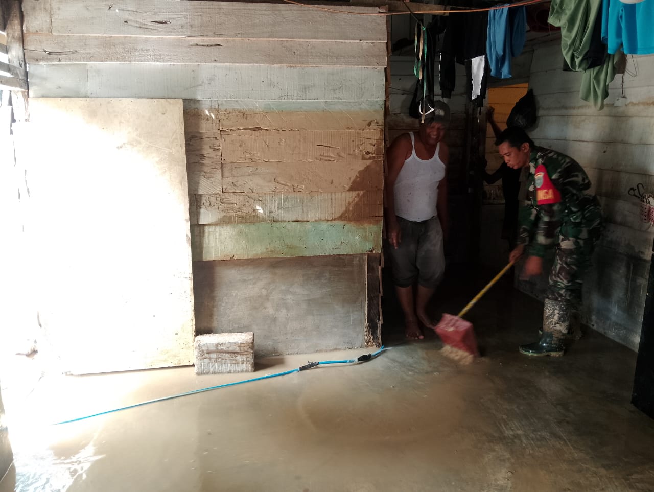 Dengan Penuh Semangat Serka Budi Gunawan Bantu Warga Binaan Bersihkan Rumah Pasca Banjir