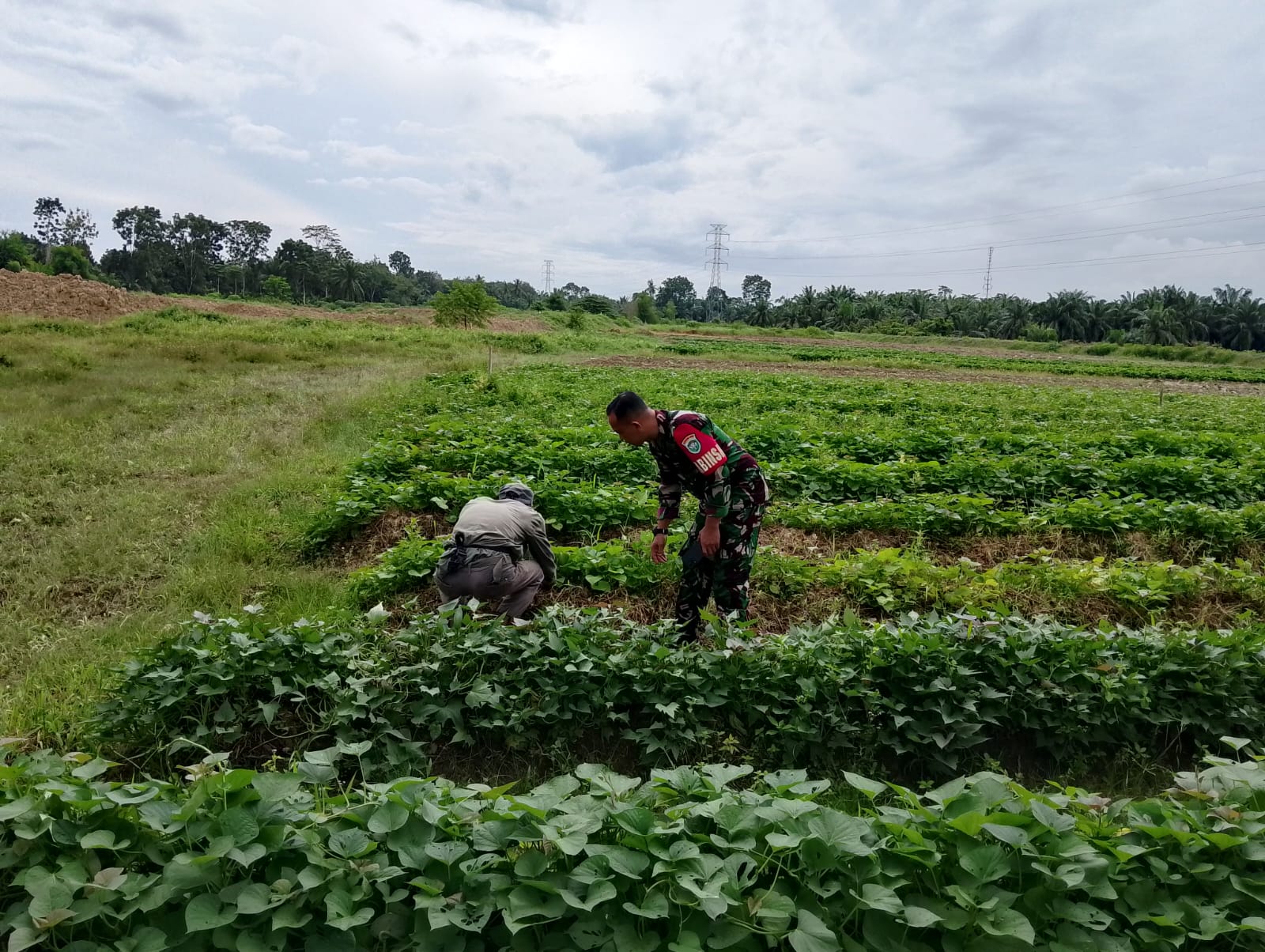 Aceh Tamiang – Babinsa Koramil 06/Manyak Payed Sertu Riki Fernandes dampingi dan berikan motivasi kepada warga petani binaan membersihkan rumput liar pada tanaman ubi jalar di kebun Bapak Sulaiman di Desa Beteng Anyar, Kecamatan Manyak payed, Kabupaten Aceh Tamiang. Minggu (16/11/2025).