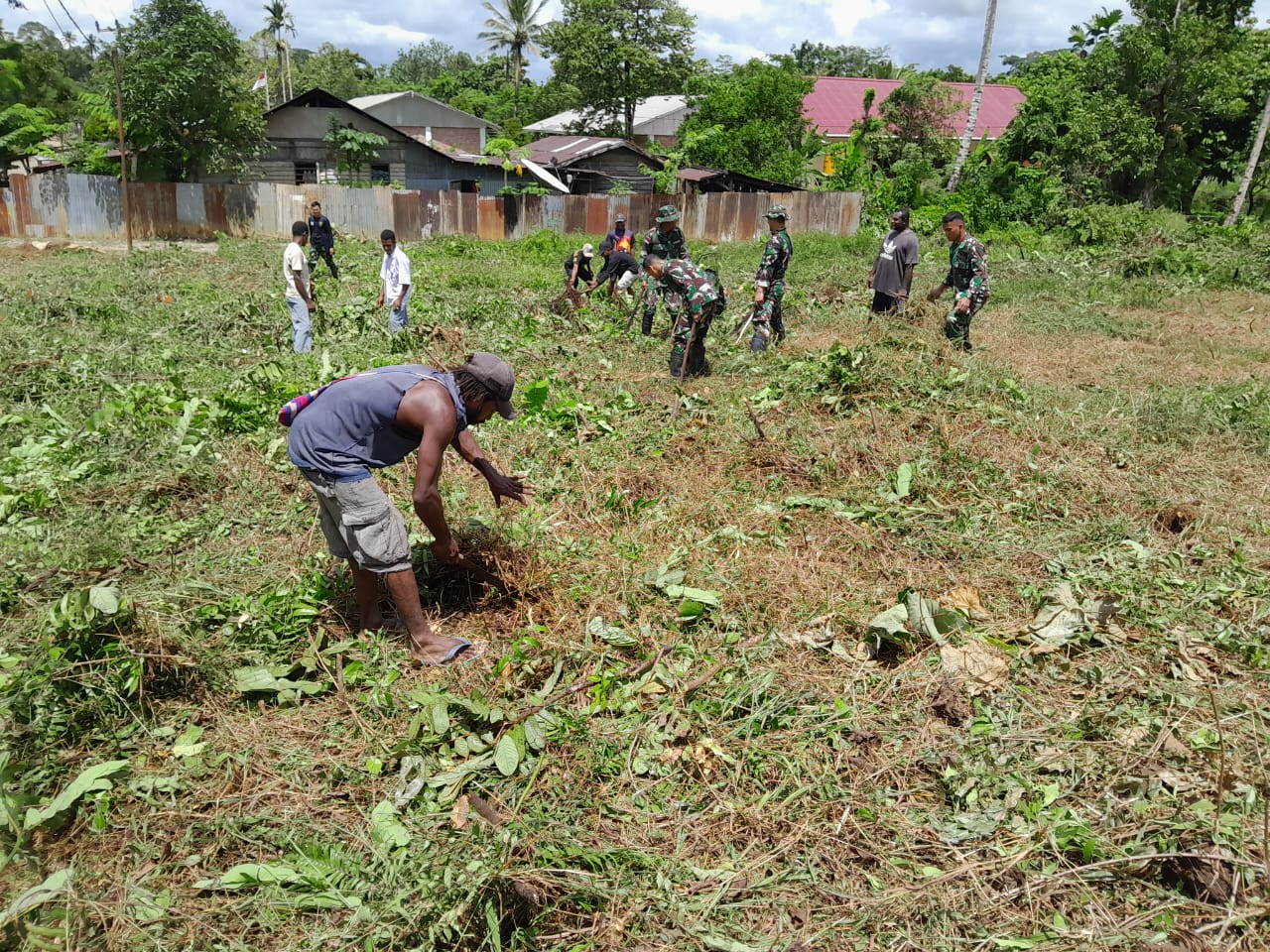 Komandonews.com,Boven Digoel-Satgas Yonif 144/JY melalui Pos Kout Tanah Merah melaksanakan kegiatan Karya Bakti pembukaan lahan ketahanan pangan di Kampung Mawan, Distrik Mandobo, Kabupaten Boven Digoel, Papua Selatan. Kamis (24/04/2025).