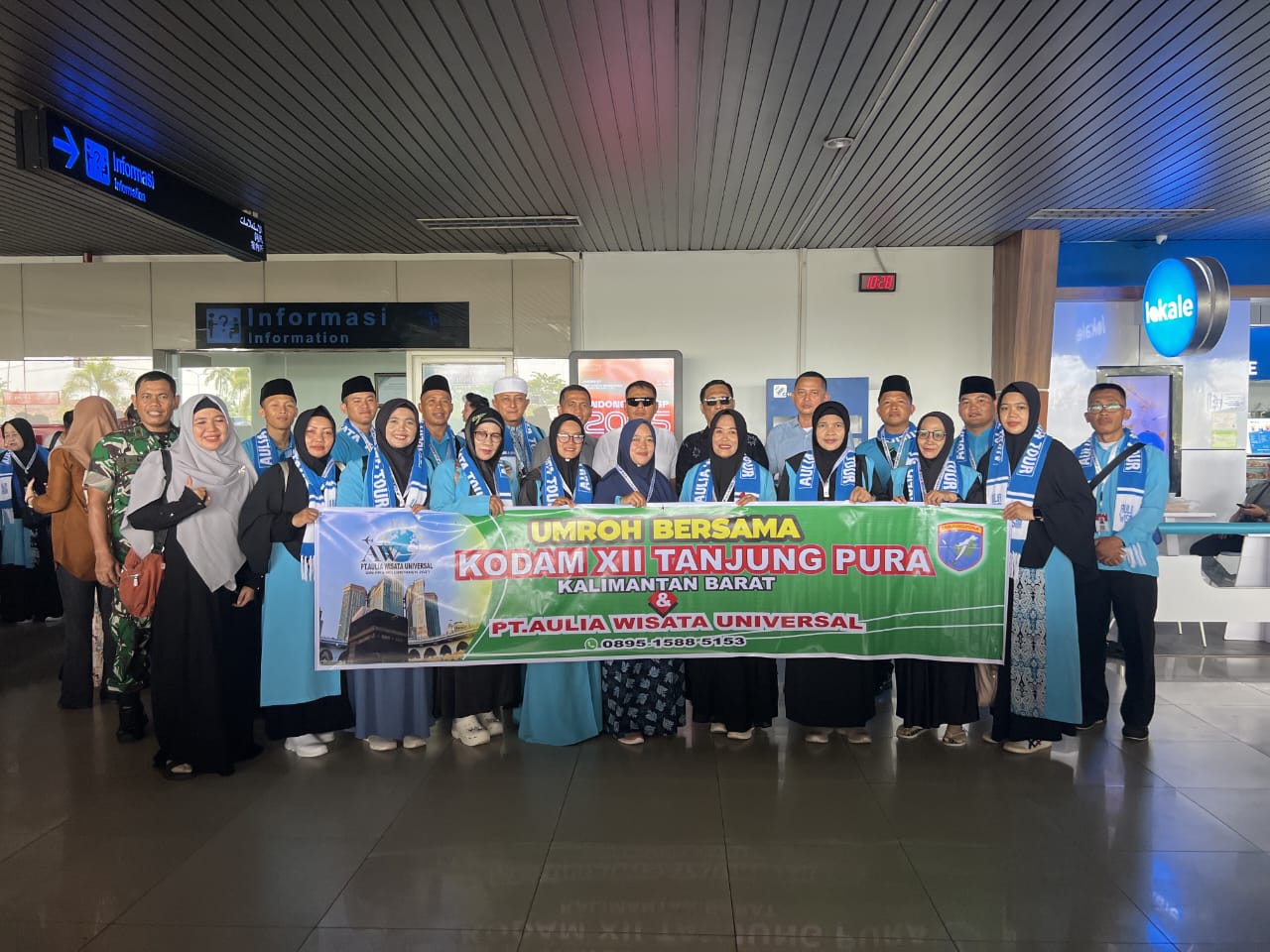 Kubu Raya – Sebanyak 16 jama’ah umroh penghargaan Pangdam XII/Tanjungpura berangkat ke Tanah Suci melalui Bandara Supadio, Kubu Raya pada hari Minggu (12/10/2025). Mereka tampak semangat menjalani prosedur perjalanan ibadah ini.