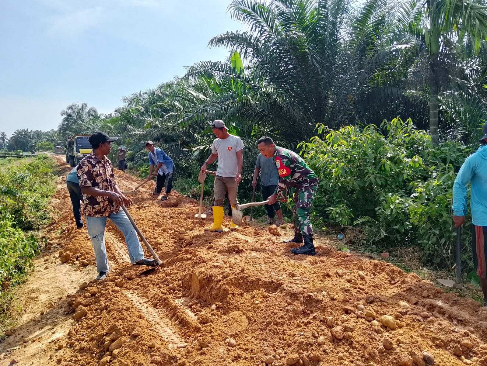“Kegiatan penimbunan jalan ini dilaksanakan karena melihat kondisi jalan usaha tani yang sudah rusak sehingga mengganggu kelancaran dan membahayakan keselamatan pengguna jalan,” ungkap Babinsa.