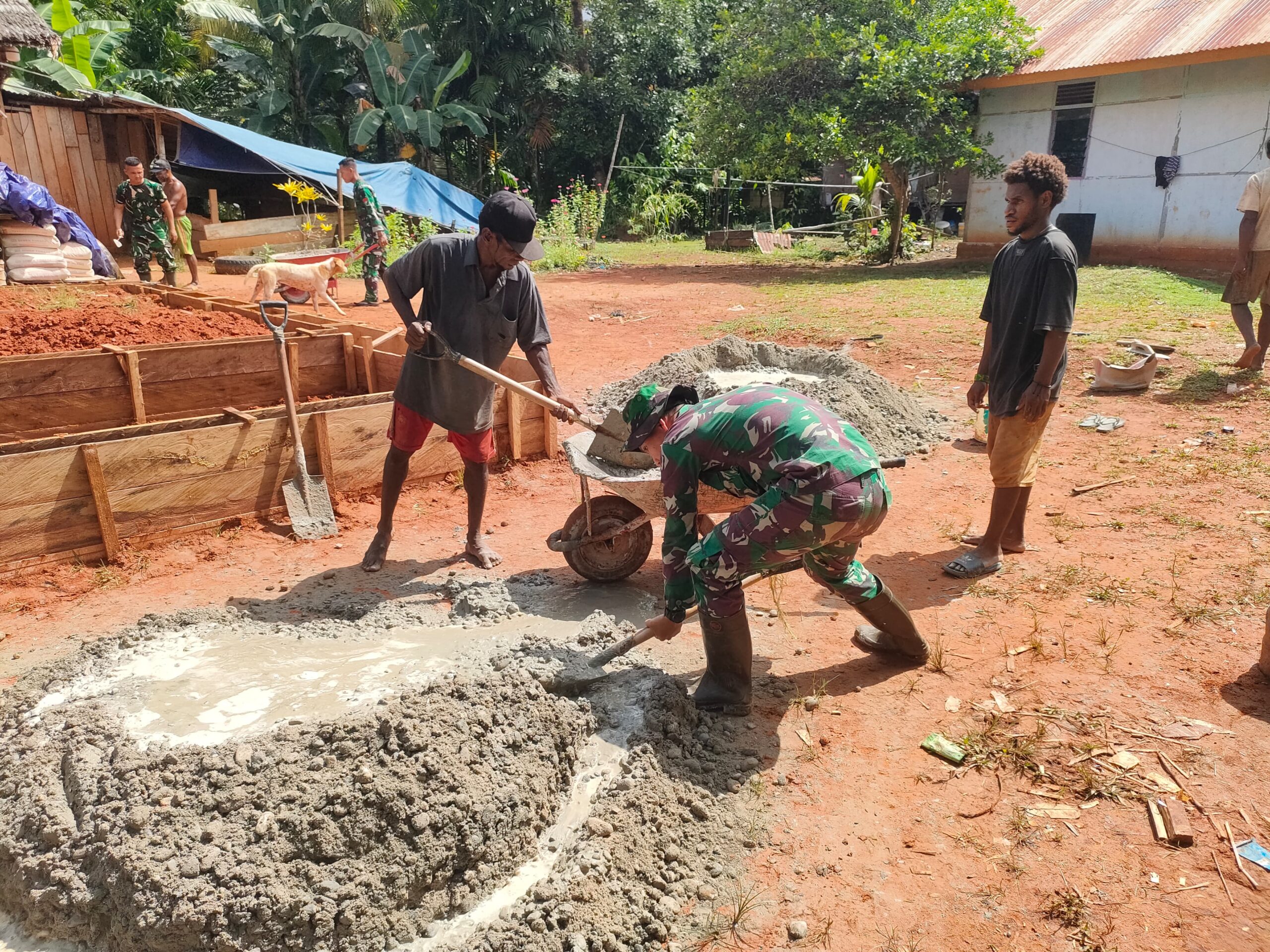 Kegiatan karya bakti ini dipimpin langsung oleh Letda Inf Juliansyah bersama personel Pos Kotis Satgas 144/JY, proses pembangunan rumah ini dilakukan dengan penuh gotong-royong, dimana para anggota Satgas bahu-membahu bersama masyarakat untuk mempercepat pembangunan Rumah Tidak Layak Huni tersebut.