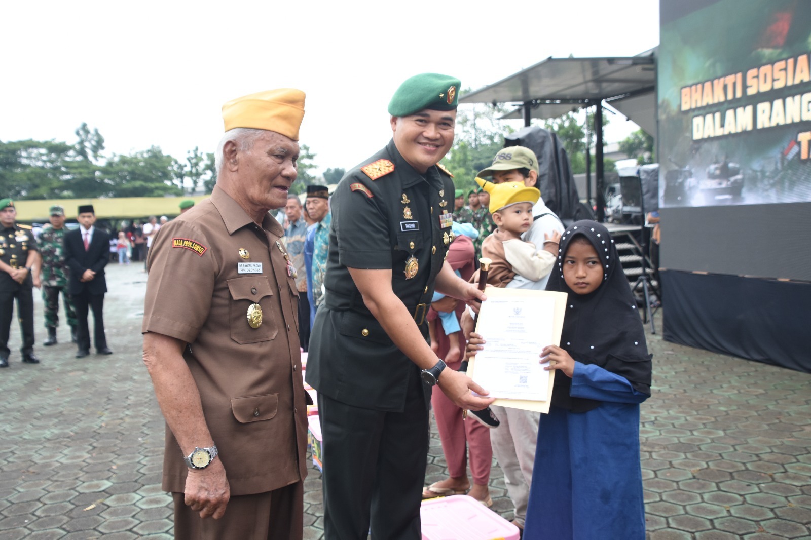 Usai upacara, kegiatan dilanjutkan dengan peninjauan bakti sosial yang meliputi sunatan massal, pengobatan umum, penyuluhan ibu hamil, penyerahan alat bantu kesehatan, dan donor darah, serta terdapat kegiatan pameran UMKM.