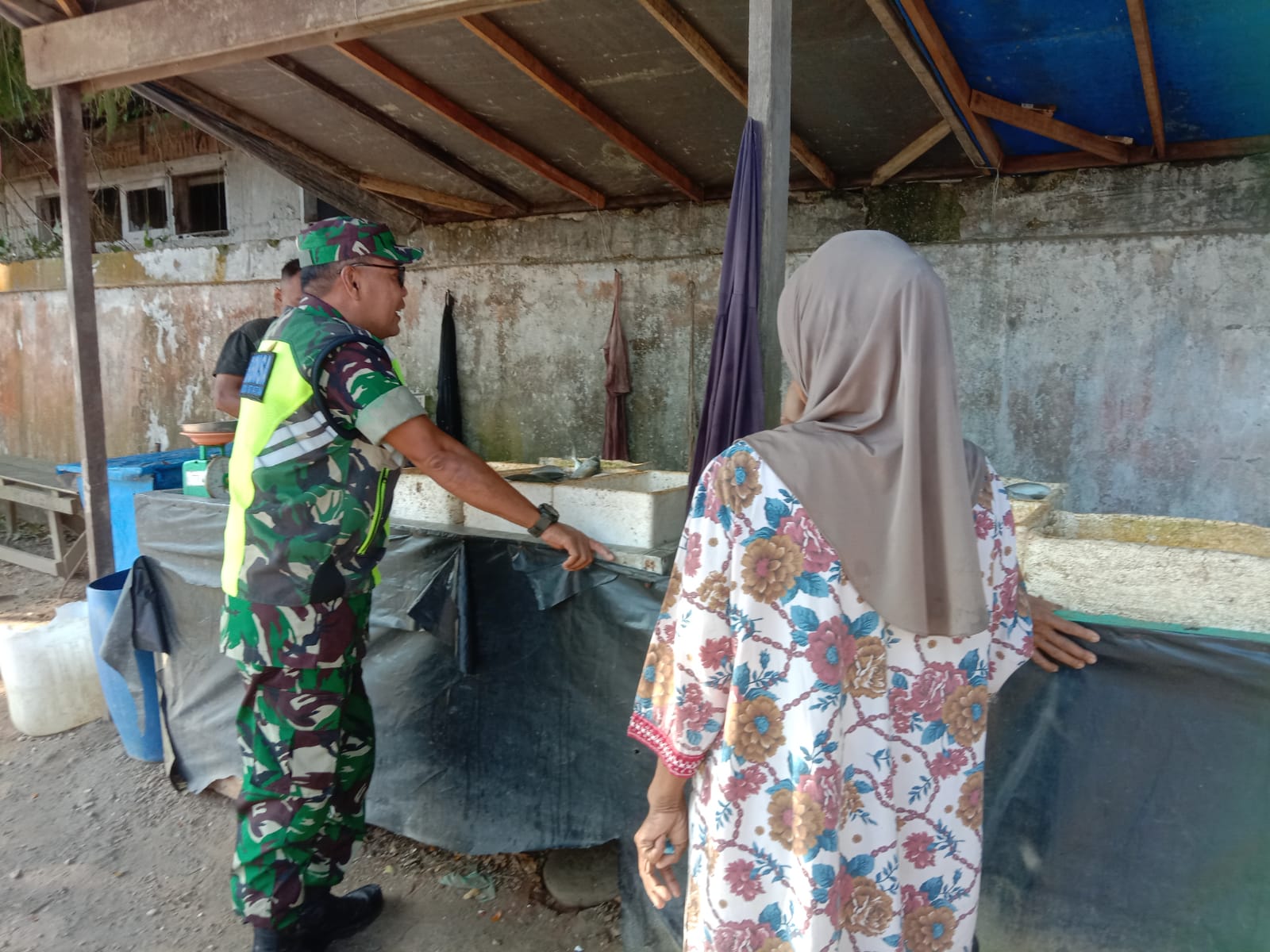 Aceh Tamiang – Babinsa Koramil 08/Rantau Serma Wakidi, melaksanakan Komsos dengan pedagang ikan yang ada di Desa Alur Cucur, Kecamatan Rantau, Kabupaten Aceh Tamiang. Minggu (03/08/2025).