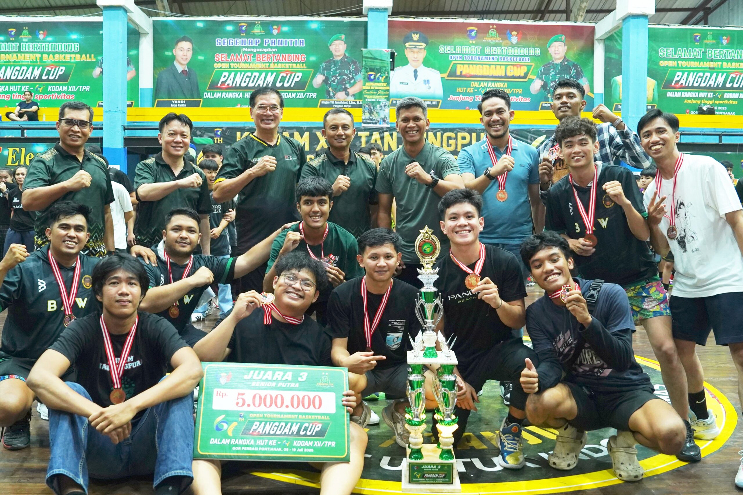 Pontianak – Kasdam XII/Tanjungpura Brigjen TNI Putra Widyawinaya, S.H., M.P.M., menutup resmi Open Tournament Basketball Pangdam Cup 2025 dalam rangka memperingati hari ulang tahun ke-67 Kodam XII/Tpr. Acara berlangsung di GOR Perbasi, Kota Pontianak, Sabtu (19/7/2025) malam.
