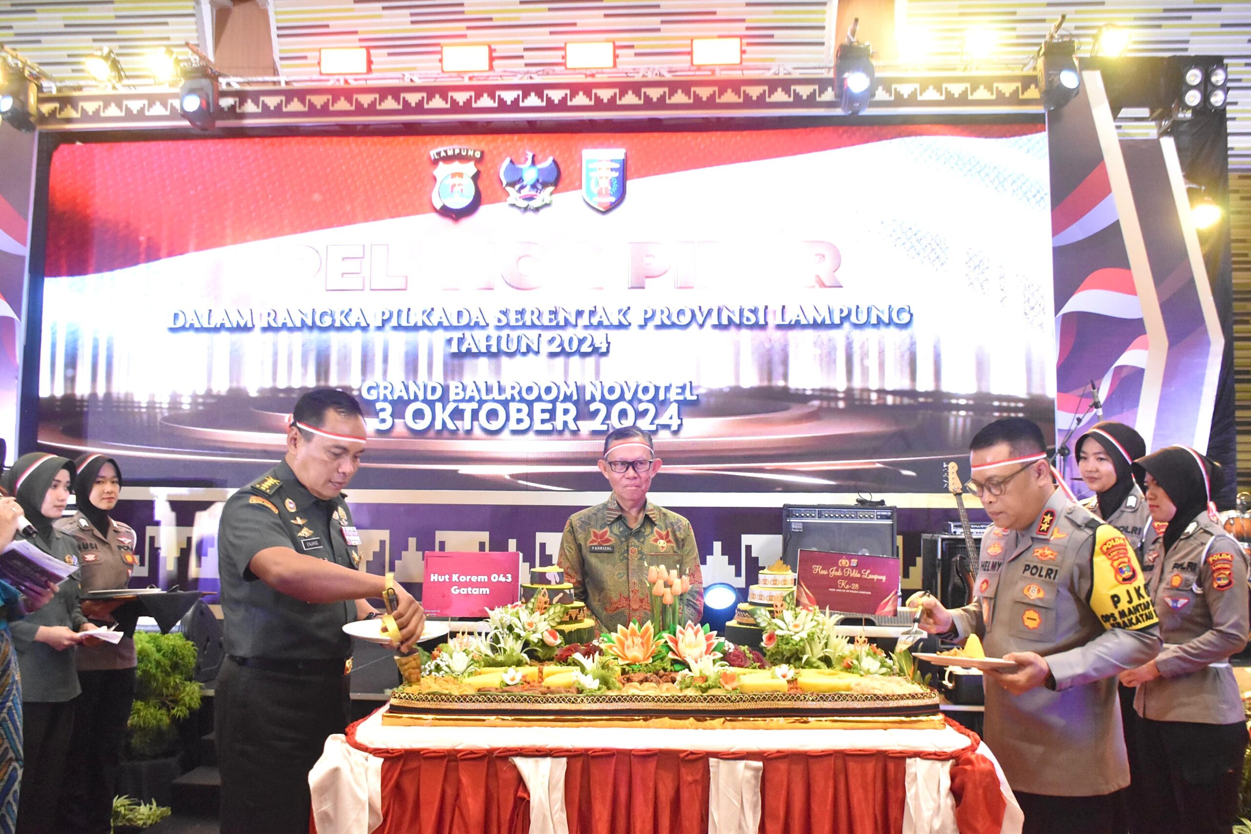 “Kemenangan yang dicapai oleh paslon yang didukung oleh partai politik tidak harus mengganggu kondusifitas di daerah, untuk itu Korem 043/Gatam siap membantu mewujudkan kamtibmas yang kondusif dalam rangka mensukseskan Pilkada Serentak tahun 2024 di wilayah Provinsi Lampung, dan siap bersinergi, bekerjasama dengan pemda, Polda, ormas, tokoh agama, tokoh masyarakat dan instansi terkait lainnya, dalam menjamin stabilitas keamanan selama proses Pilkada berlangsung, termasuk diantaranya pencegahan konflik dan potensi gangguan keamanan lainnya,“ terangnya.