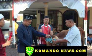 Kegiatan dilanjutkan dengan penyerahan secara simbolis hewan qurban oleh Danyonarhanud 2 Kostrad Letkol Arh Farauk Saputra, S.Sos., MMDS. kepada Letda Arh Zulfikar selaku panitia qurban.
