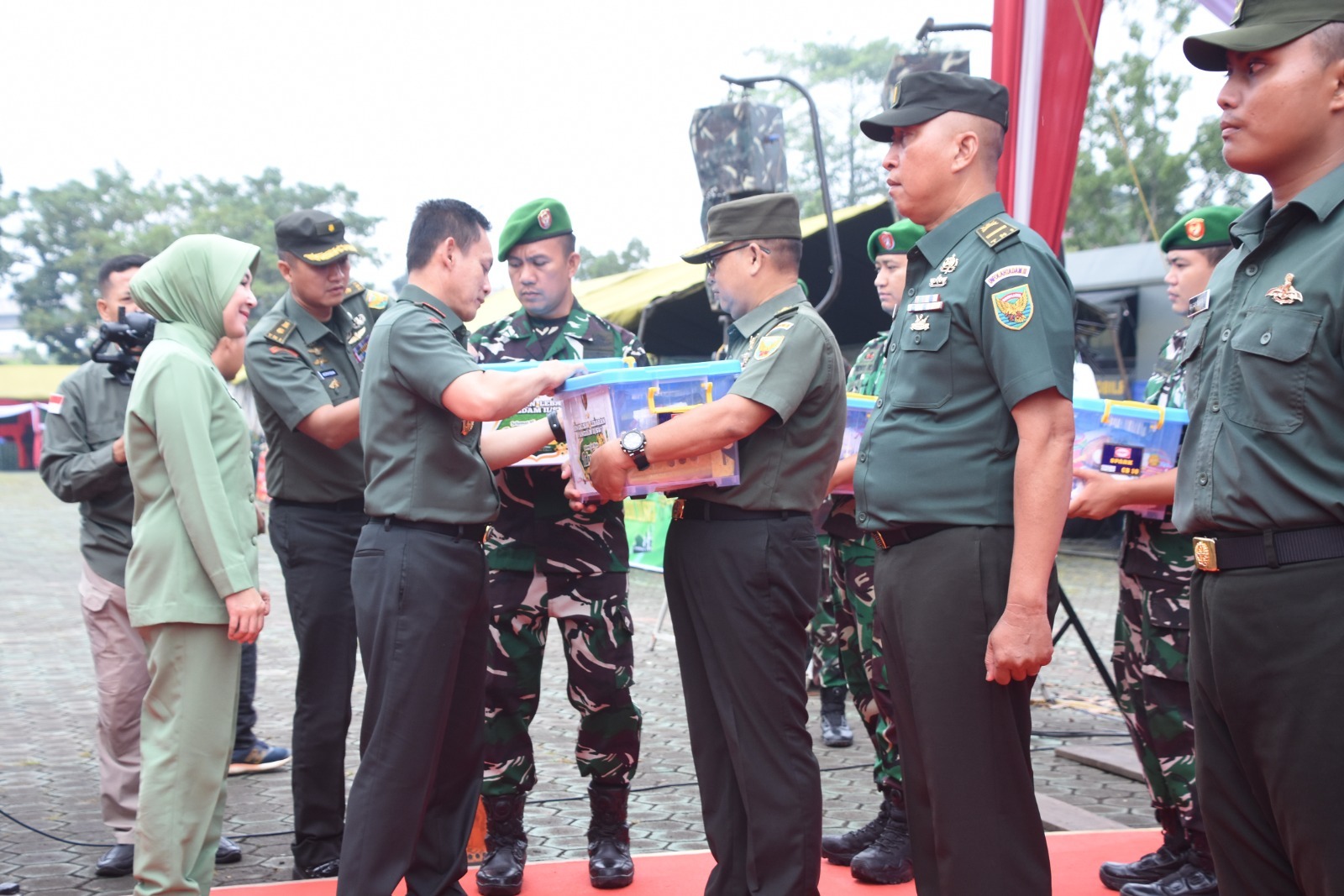 Disela-sela kegiatan, Pangdam II/Swj berkesempatan menyerahkan bingkisan lebaran kepada prajurit dan PNS.