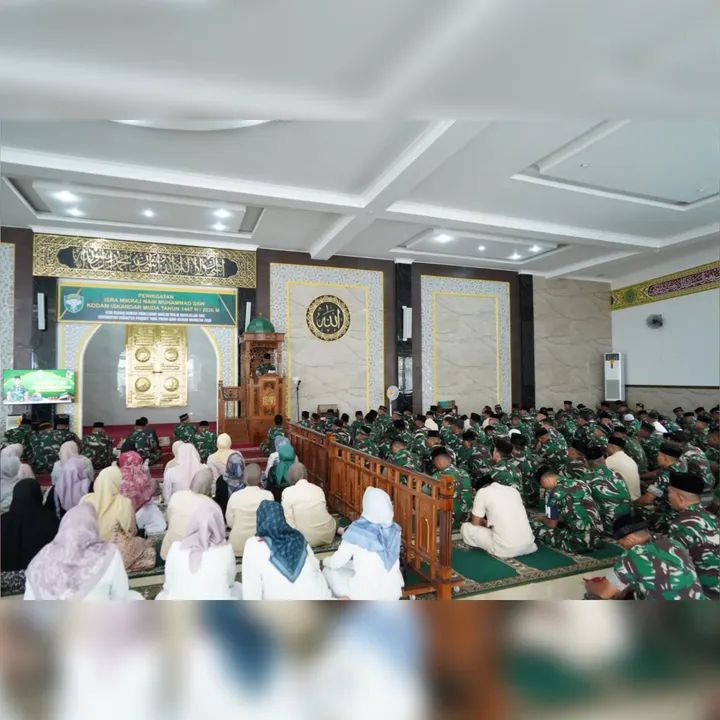 Banda Aceh – Panglima Komando Daerah Militer Iskandar Muda (Pangdam IM) Mayor Jenderal TNI Joko Hadi Susilo, S.I.P, menghadiri peringatan Isra Mikraj Nabi Besar Muhammad SAW Tahun 1447 Hijriah/2026 M yang diselenggarakan oleh Kodam Iskandar Muda di Masjid Baabul Mawaddah, Makodam IM, Kamis (22/01/2026).