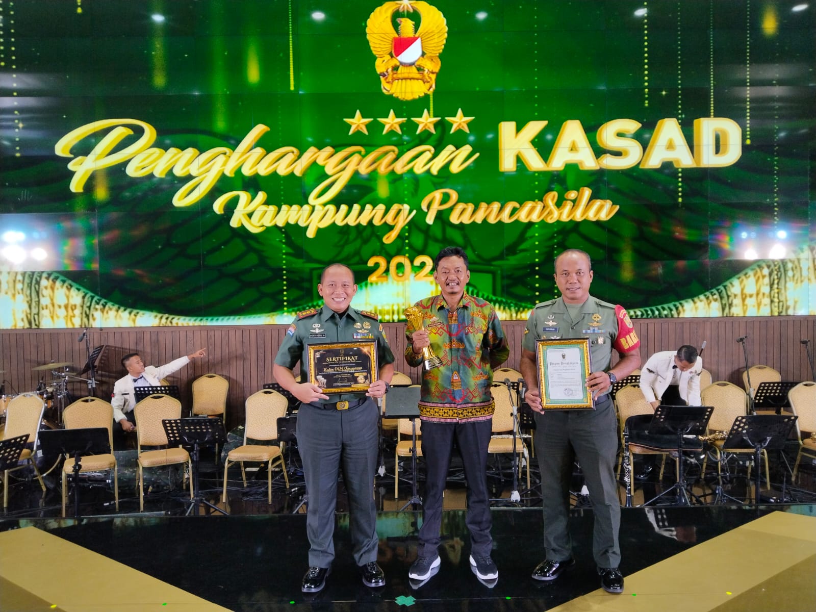 Komando news. com, Tanggamus–Kodim 0424/Tanggamus di bawah kepemimpinan Komandan Kodim 0424/Tanggamus Letkol Inf Vicky Heru Harsanto.S.I.P.,MSi berhasil meraih juara 3 penghargaan Kasad Award dalam lomba Kampung Pancasila Kategori Ketahanan Pangan, bertempat di Gedung Aula AH Nasution Mabesad Jakarta, Jumat (20/12/2024) malam.