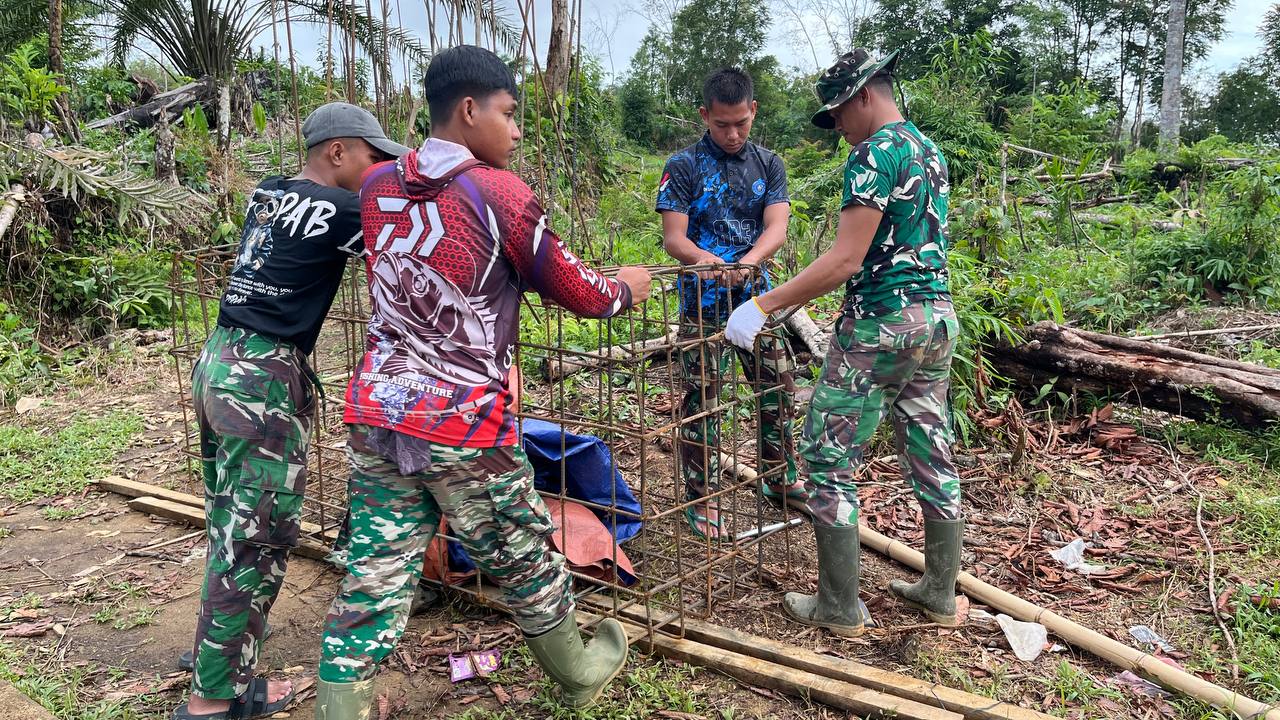 Kodim 1204/Sanggau-sekadau Laksanakan Penyiapan Pembangunan Jembatan Gantung di dusun tanjung desa Nanga mahap kec Nanga mahap kab sekadau