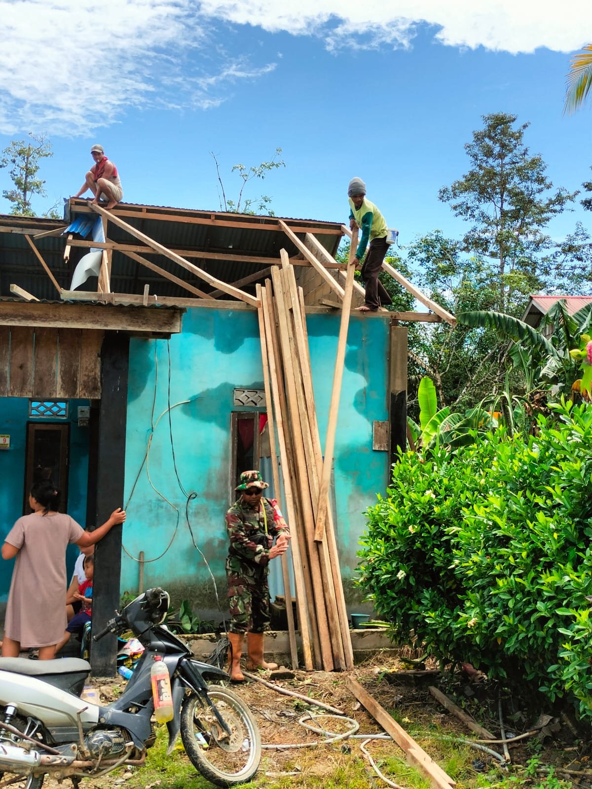 Bengkayang – Kodim 1209/Bky hadir langsung ditengah-tengah kesulitan rakyat dengan semangat gotong royong memperbaiki berbagai rumah warga dan beberapa pasilitas umum lainnya yang rusak akibat bencana angin puting beliung dan curah hujan tinggi. Aksi nyata ini tidak hanya membantu meringankan beban warga yang terkena musibah, tetapi juga mempererat tali silaturahmi dan kebersamaan antar warga, bertempat di Dsn. Banan Lae Ds. Perangkat Kec. Ledo Kab. Bengkayang.