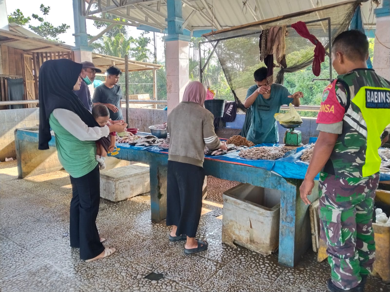 Aceh Tamiang – Babinsa Koramil 04/Bendahara Serda Wahyudi melaksanakan kegiatan Komunikasi sosial dengan penjual ikan di pasar tradisional Desa Mesjid Sungai Iyu, Kecamatan Bendahara, Kabupaten Aceh Tamiang. Sabtu (18/04/2026).