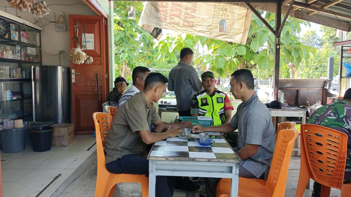 Aceh Tamiang – Babinsa Koramil 06/Manyak Payed Serda Aprian melaksanakan monitor kegiatan masyarakat dan melaksanakan komunikasi sosial (komsos) dengan tokoh pemuda dan warga desa binaan di Kedai Kopi Desa Ie Bintah, Kecamatan Manyak Payed, Kabupaten Aceh Tamiang. Jumat (24/04/2025).