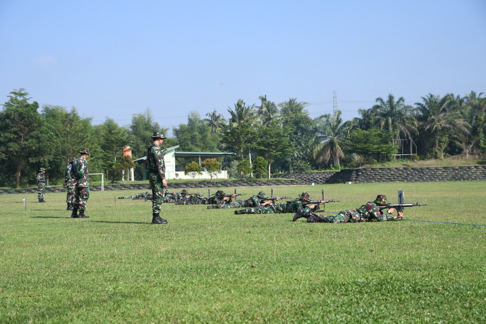 Tembak tepat/penilaian senapan pada jarak 100 M, dilakukan dengan 3 sikap (berdiri, duduk, tiarap tidak tersandar). Menembak Pistol dengan sikap berdiri 2 tangan.