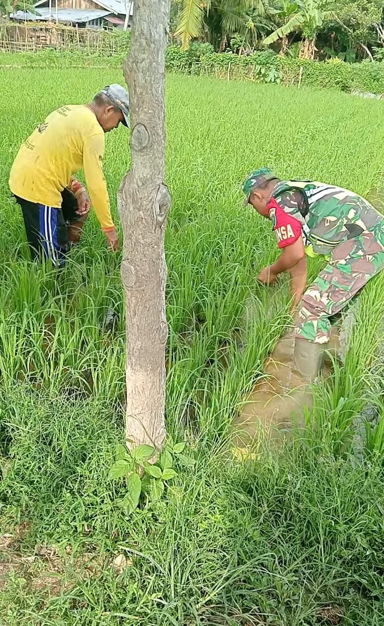 Aceh Tamiang – Babinsa Koramil 03/Seruway Sertu Jefri melaksanakan membantu petani membersihkan gulma pada tanaman padi di Desa Tansi Lama , Kecamatan Seruway, Kabupaten Aceh Tamiang. Jumat (21/11/2025).
