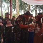 Komandonews.com,Tanggamus–Ketua tim Wasev TMMD Ke-121, Brigjen TNI Kristomei Sianturi, menyerahkan sejumlah bantuan
