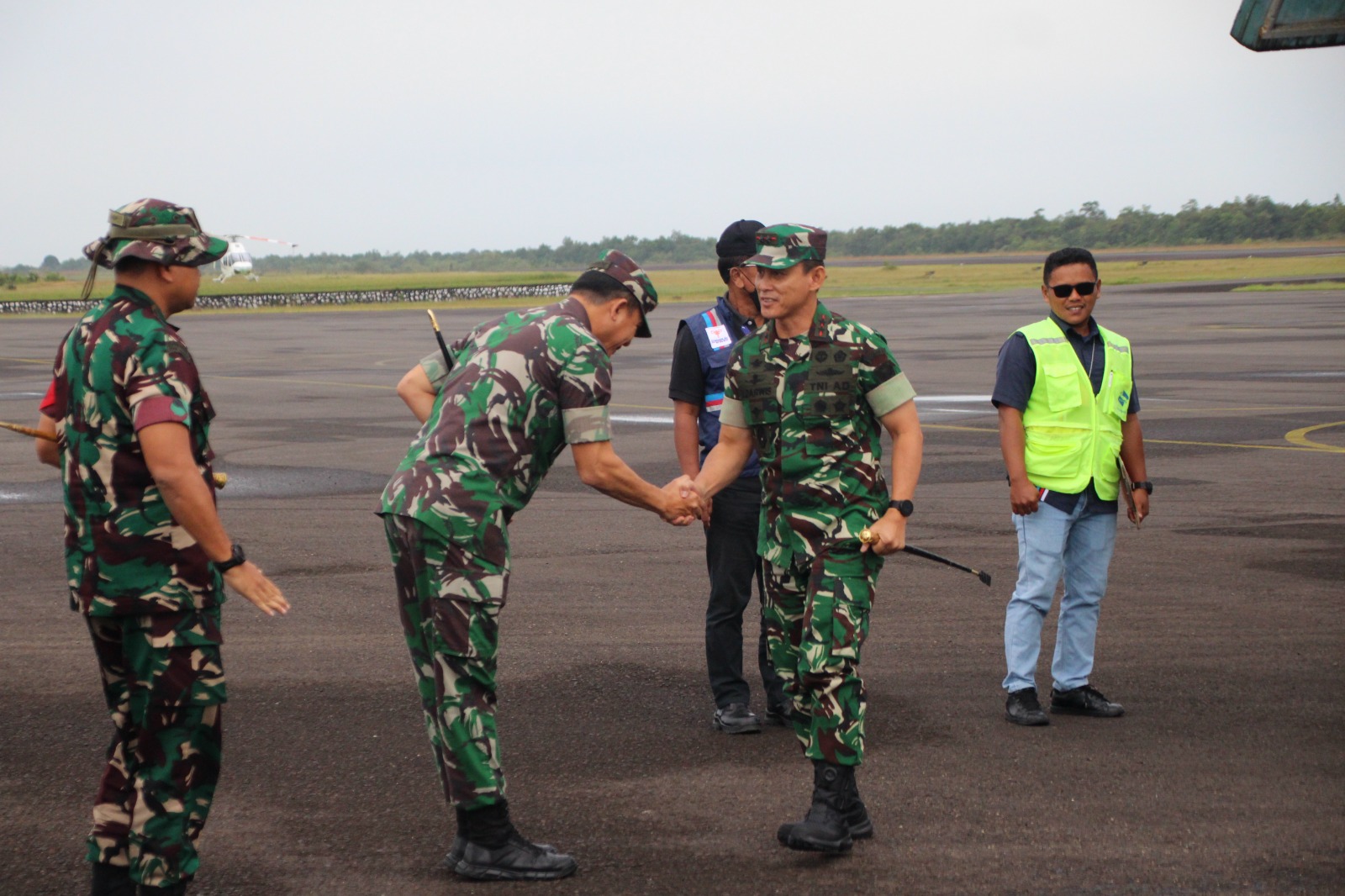 Danrem 045/Garuda Jaya Brigjen, TNI Safta Feryansyah, S.E., S.I.P., M.Han., beserta jajaran menyambut kedatangan Pangdam II/Sriwijaya di Bandara Internasional H.A.S. Hanandjoeddin..