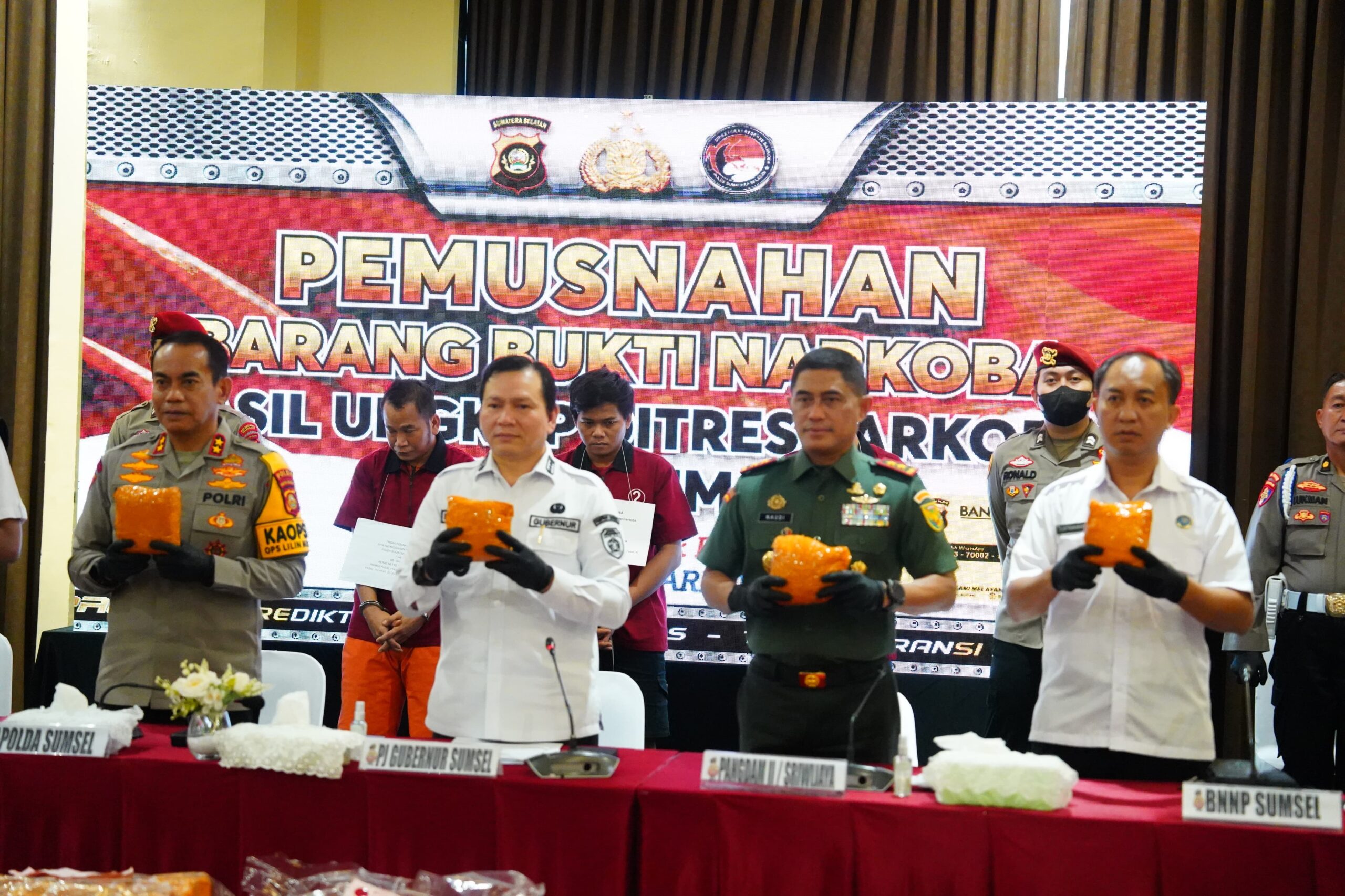 Hadir dalam kegiatan ini Forkopimda Provinsi Sumsel, diantaranya Pj. Gubernur Sumsel Elen Setiadi, Kapolda Sumsel Inspektur Jenderal Polisi Andi Rian Ryacudu Djajadi, S.I.K., M.H., Kasrem 044/Gapo dan Instansi terkait seperti BNNP, Binda, Kejaksaan, Perwakilan Lanal, Lanud serta Jajaran Ditresnarkoba Polda Sumsel.