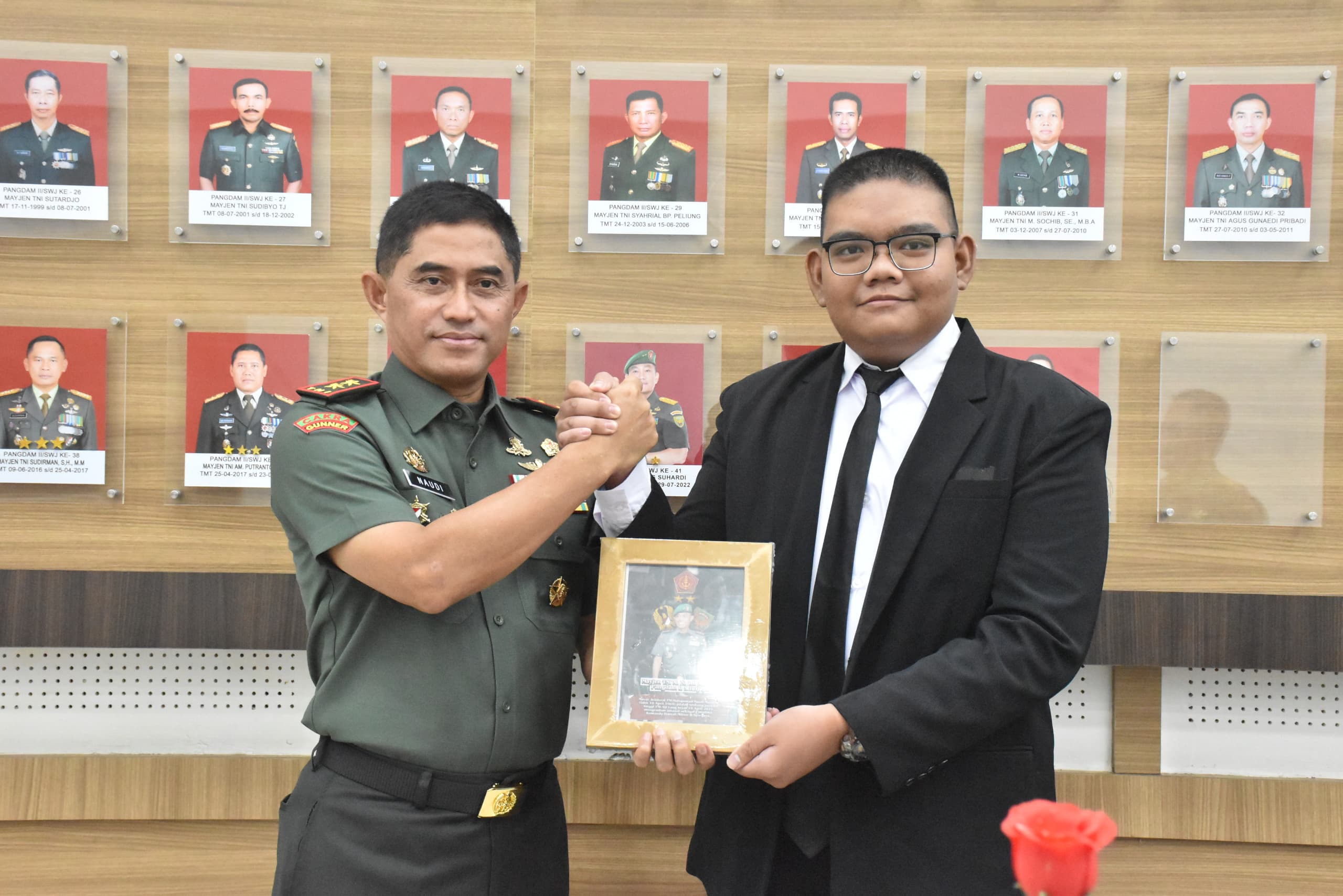 Sementara, Pangdam II/Sriwijaya didampingi Aster Kasdam II/Swj Kolonel Inf Frans Kishin Panjaitan, S.A.P, M.P.M, M.Han, Kababinminvetcaddam II/Sriwijaya Kolonel Inf Feridian Prabawa, Kabintaljarahdam II/Sriwijaya Kolonel Kav Ahmad Edi Supriyadi, dan Kapendam II/Sriwijaya Kolonel Inf Drs. Paiman, M.I.P.