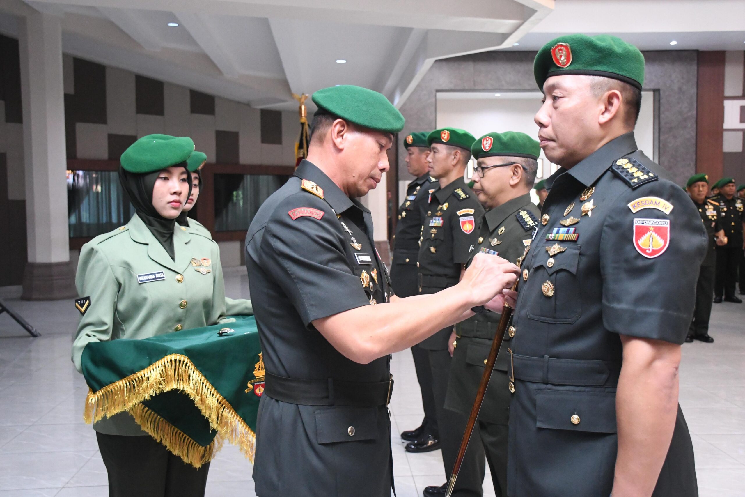 Semarang — Pangdam IV/Diponegoro Mayjen TNI Deddy Suryadi, S.I.P., M.Si., memimpin acara Serah Terima Jabatan (Sertijab) Aslog Kasdam, Kakesdam, Dandeninteldam serta penerimaan jabatan Kasansidam IV/Diponegoro, bertempat di Gedung Balai Diponegoro, Semarang, pada Selasa (24/6/2025).