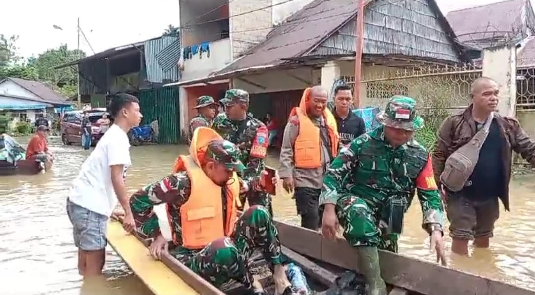 Bengkayang – Memasuki musim penghujan, Komandan Kodim 1209/Bky Letkol Inf Albertinus Mariano,S.E,terjun langsung ke lokasi yang terdampak banjir di
